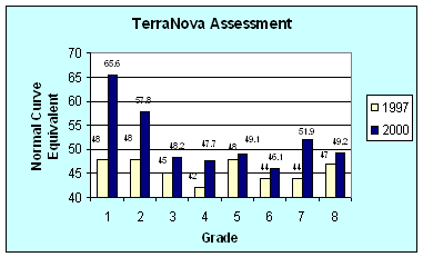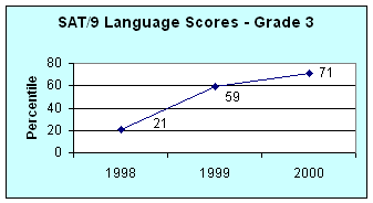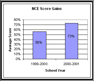 The school purchased and implemented Classworks in 1997.  The state average for students who met or exceeded expectations was 61 percent in 1999, 63 percent in 2000 and 63 percent in 2001.  The school scored 67 percent in 1999, 72 percent in 2000 and 73 percent in 2002.