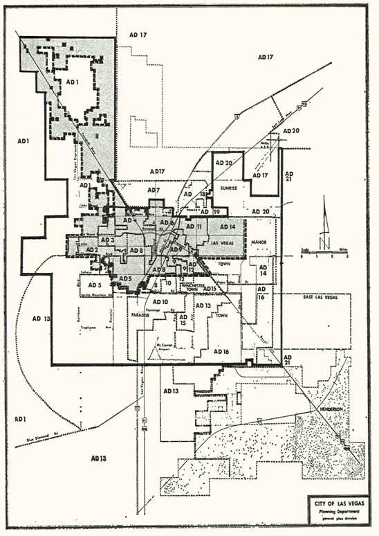 Section 1.030 Description of territory. The territory ambraced in the city is that certain land described in the official plat required by NRS 234.250 to be filed with the county recorder and county assessor as such plat is revised from time to time, [.] including but not limited to all areas enclosed within the outermost solid line shown on the attached map, including the urban area of the unincorporated towns located in Paradise Valley and Sunrise Manor.