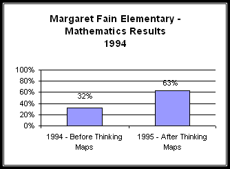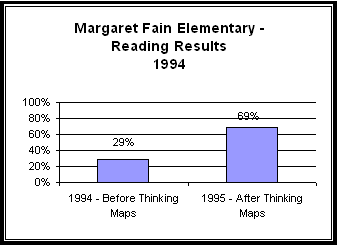 The first Thinking Maps school in inner-city Atlanta was Margaret Fain Elementary, a Title I school-wide school with over 70% free or reduced lunch population. The school was placed into Title school-wide improvement in 1994 due to low scores on the Georgia State Test of Basic Skills in reading and math. The Thinking Maps program was fully implemented during 1995. The following charts show dramatic improvement in test scores following implementation of the Thinking Maps program: