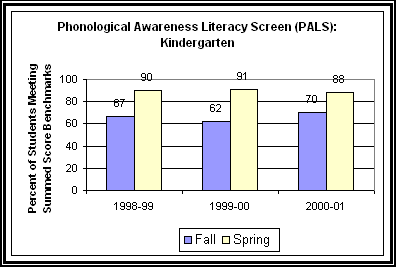 At-risk students in 21 kindergarten classrooms who received instruction with Earobics (n=75) achieved significantly higher results on the Phonological Awareness Literacy Screening (PALS) assessment than did students in the control group (n=103) who received instruction using alternate reading interventions (P=0.017).
