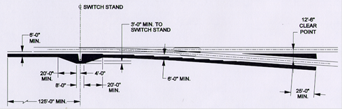 (d) If 4 feet or less from the switch stand, be not less than 3 feet in width.