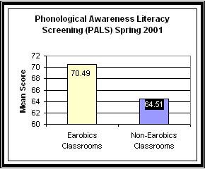 At-risk students in 21 kindergarten classrooms who received instruction with Earobics (n=75) achieved significantly higher results on the Phonological Awareness Literacy Screening (PALS) assessment than did students in the control group (n=103) who received instruction using alternate reading interventions (P=0.017).