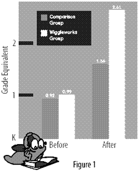 From November 1994 to June 1995, 651 students participated in the Harvard study. To measure the students’ improvement in reading skills, researchers administered three subtests of the Iowa Test of Basic Skills, including vocabulary, word analysis, and language. At the end of the study, according to Lynn Hickey Schultz, Ed.D., the study’s primary researcher, “Using the WiggleWorks technology, students scored higher than the comparison students on all three subtests. In fact, the gains made in a composite score of the language arts subtests were more than twice as great for the WiggleWorks technology group than for the comparison group. Even among the comparison students, those using only the WiggleWorks print materials showed greater improvement in both reading and writing than those using their regular language arts materials.”