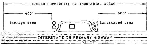 (b) An area along a highway extending 600 feet from and beyond the edge of land that:
